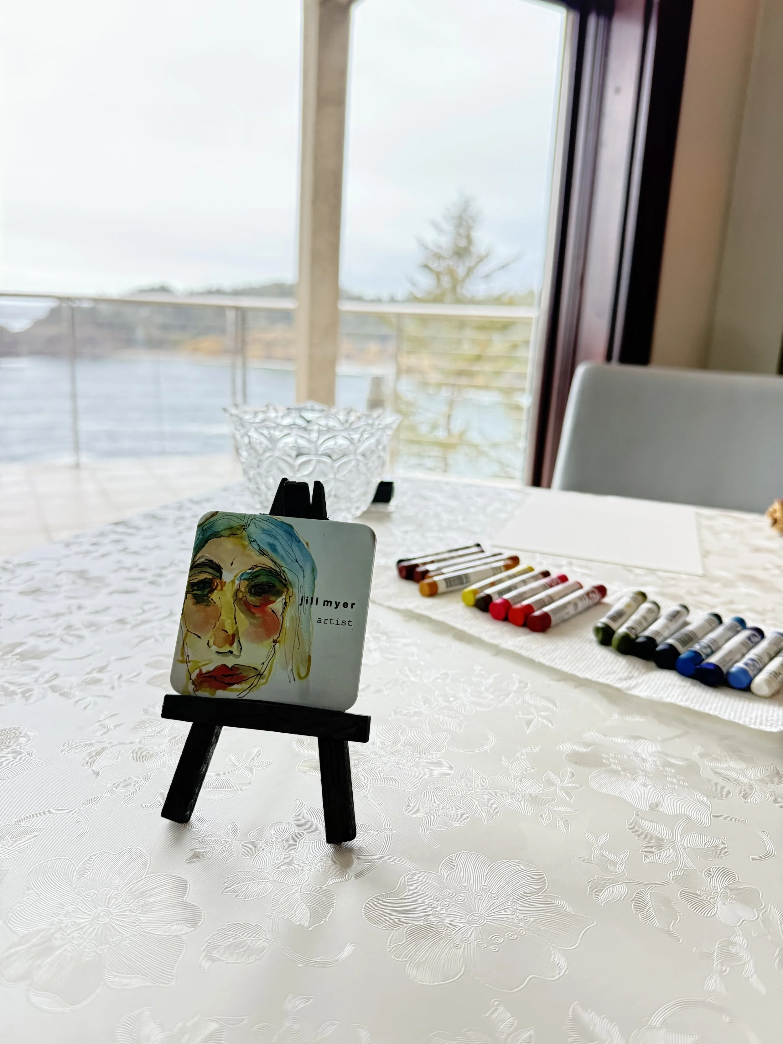 Jill will bring her paints, brushes, papers, and her giant, cheesy smile to your event and take snapshots of your guests as they arrive.